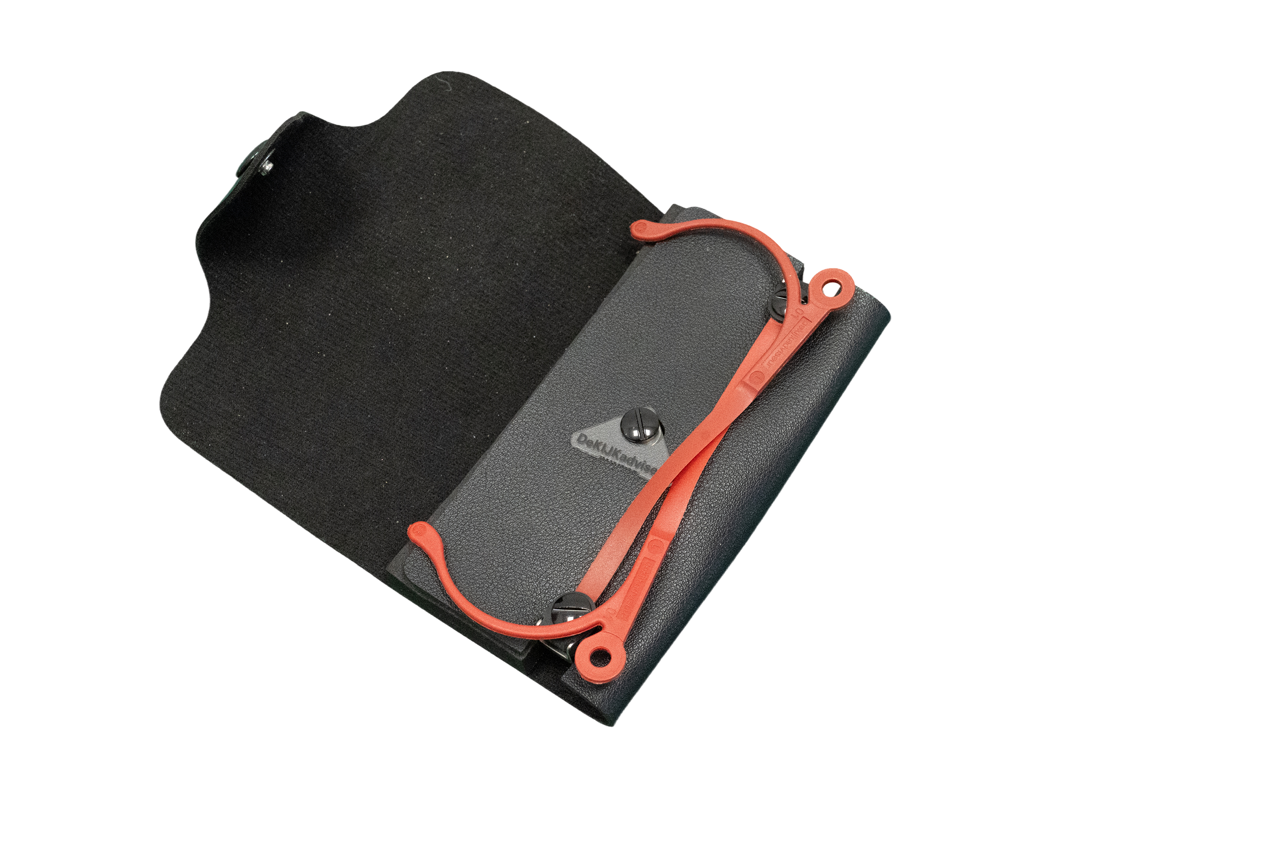 De stevige, compacte case beschermt de bril tijdens transport en opslag, zowel in de werkbus als in de sporttas. Binnenin is ruimte voor het montuur, de platte pootjes, het elastische hoofdbandje én de verstelschroef, zodat alle onderdelen altijd samen blijven. Zo heeft de drager zijn persoonlijke brilset compleet bij de hand en blijft de bril langer schoon en goed beschermd.